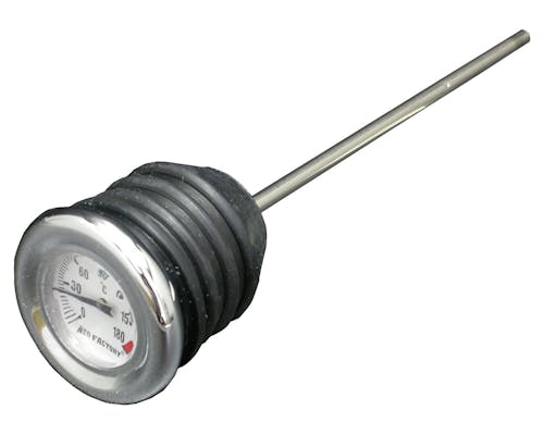 油温計の付いたオイルタンクキャップです。 通常のキャップと同じ様に挿すだけで油温がわかります。 表示も優しい摂氏(℃)タイプ もちろんディップスティックとしてオイル量も確認できます。 愛車のコンディションを管理するのに欠かせないアイテムです。 |