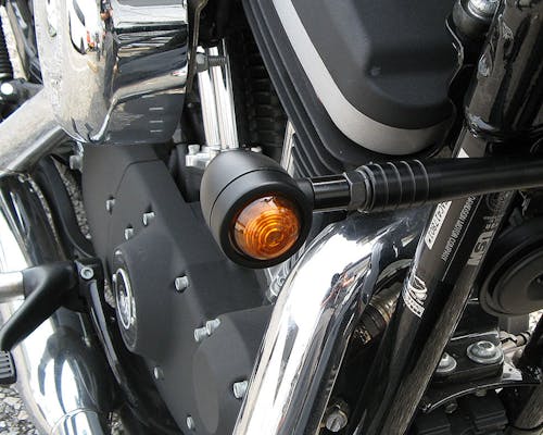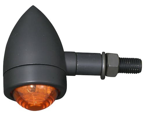 小ぶりなバレットウインカーです。 ハンドル周り、リア周りをスッキリさせたいときに重宝しますよ。 こちらは高光度なLEDバルブタイプです。 ハイテク系カスタムなどにどうぞ! |
