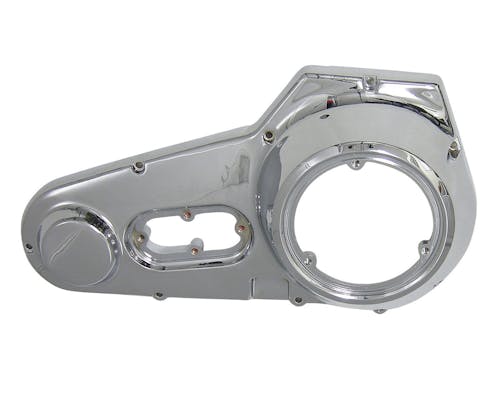 アウター(外側)のプライマリーカバーです。 フルメッキなので、見た目がとても綺麗です。 クロームカスタムに、リプレイス用にどうぞ。 |