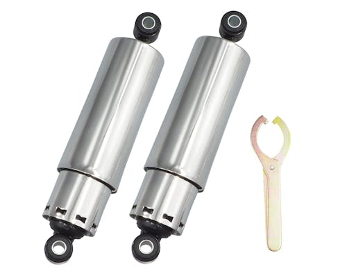 人気の11インチリアショックにフルカバータイプが登場です。 車高が下がる事によってカスタム感が強くなりますよ。 シート高も下がりますので足つき性も良くなります。 プリロード調整用のアジャストツールも付属していますので 乗り方に合わせて調整して下さい。 プリロードは5段階調整です。 プリロードを調整する際には浸透性潤滑剤(ラスペネ等)を使用してから回すと、 スムーズに回ります。 ※右回しでプリロードが掛かり、左回しで緩みます。 |