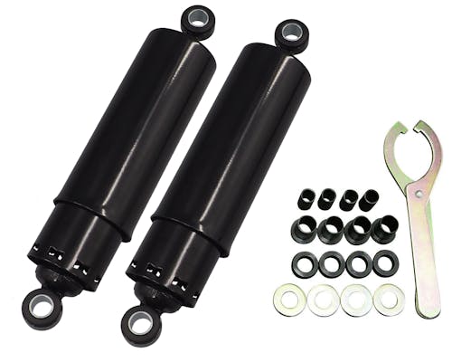 人気の11インチリアショックにフルカバータイプが登場です。 車高が下がる事によってカスタム感が強くなりますよ。 シート高も下がりますので足つき性も良くなります。 プリロード調整用のアジャストツールも付属していますので 乗り方に合わせて調整して下さい。 プリロードは5段階調整です。 プリロードを調整する際には浸透性潤滑剤(ラスペネ等)を使用してから回すと、 スムーズに回ります。 ※右回しでプリロードが掛かり、左回しで緩みます。 ※04y-XL用は内部にストローク量を制限するカラーが備わっています。 |