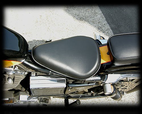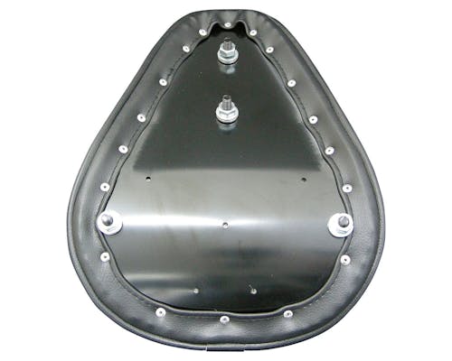 ソロシートです。シングルシート、サドルシートともいいますね。 オールドスクールチョッパーには欠かせません。 アンダーには関連商品に記載のソロシート用アンダーブラケットを使ってください。 素材は合皮ですが、質感はかなり良いです。 |