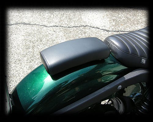 ピリオンシートです。ピリオンパッド、タンデムシートともいいますね。 関連商品に記載のソロシートブラックと相性抜群です。 取り付けは裏面の吸盤を貼り付けるだけの簡単装着です。 素材は合皮ですが、質感はかなり良いです。 ベースにはステー取り付け用のネジ穴が付いていますので、 工夫次第でボルト等での固定も可能です。 |