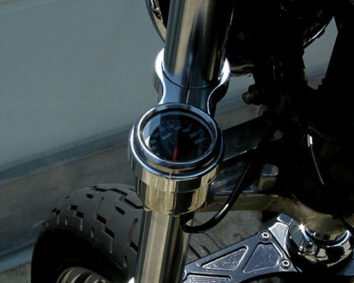 フォークチューブに48mmメーターを取り付けるクランプです。 48mmメーターはカスタムバイクには定番ですが、取り付け位置に悩んだり、 ステーの加工や製作が面倒という方が多いようです。 しかしこのステーはジャストサイズなので、取り付けはとても簡単。 更に色も三色から選べるので、取り付け車輌の雰囲気を壊しません。 取り付け車輌のフォークの径をよく御確認下さい。 |
