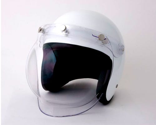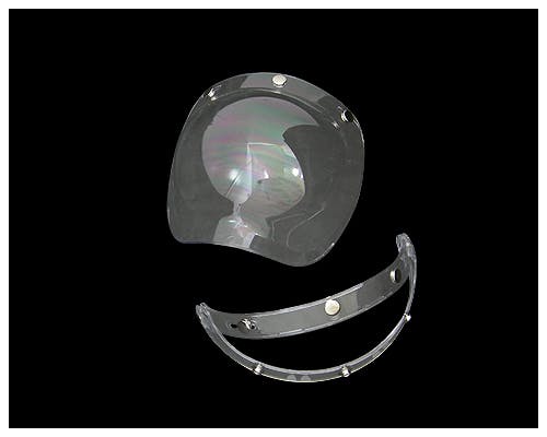 ビンテージヘルメットから現在の復刻されたジェットヘルメットなどに最適な バブルシールドとフリップアップベースのセットです! よくあるシールドとは丸みが全然違い、丸みが多きい分中での曇りが軽減されます。 シールド全体にアンチスクラッチ加工(傷が付きにくい加工)を施し、 勿論UVカット仕様です! 又、付属のフリップアップベースはセンター上下スライド、 両サイドのボタンは左右スライドで調整可能! 取り外しが非常に面倒なシールドも、ヘルメットとシールドの間に取り付けることで、 簡単にフリップアップする事ができるようになりますよ! |