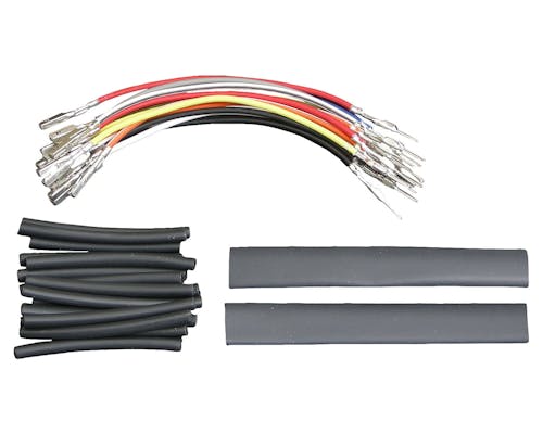 配線色: ・橙/白×2本 ・黒/赤×2本(赤の発色が若干暗い場合があります) ・赤/黄×1本 ・白/茶×1本 ・白/紫×1本 ・白/黒×1本 ・黄/黒×1本 ・白×1本 ・青×1本 ・黒×1本 ・灰×1本 ・黄×1本 ※ストライプ色組み合わせについては、画像もご参照下さい。 収縮チューブ(細)×12本 収縮チューブ(太)×2本 |