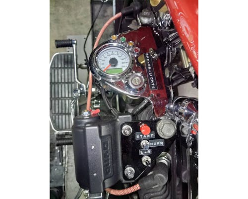 エンジンマウントと48mmメーターを付けられるステーが一体になりました! 当店の48mmメーターがスッキリとマウントできるスグレモノです。 さらにイグニッションスイッチや、インジケーターランプも移設可能。 とにかく便利なモーターマウントです。 もちろんスピードメーター以外の48mmメーターもOKです。 |