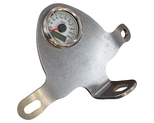 エンジンマウントと48mmメーターを付けられるステーが一体になりました! 当店の48mmメーターがスッキリとマウントできるスグレモノです。 もちろんスピードメーター以外の48mmメーターもOKです。 |