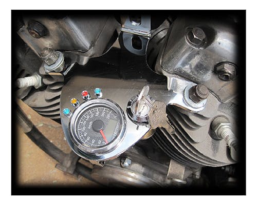 エンジンマウントと48mmメーターを付けられるステーが一体になりました! 当店の48mmメーターがスッキリとマウントできるスグレモノです。 さらにイグニッションスイッチや、インジケーターランプも移設可能。 とにかく便利なモーターマウントです。 もちろんスピードメーター以外の48mmメーターもOKです。 |