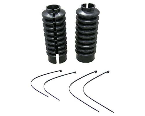 キジマのフォークブーツといえばコレ! 取り付け時にフロント周りを分解することなく、 外からはめ込む様に取り付けが出来ます。 最後に結束バンドで締める事でしっかりとした固定が可能。 正に『イージーオン』のフォークブーツです。 |