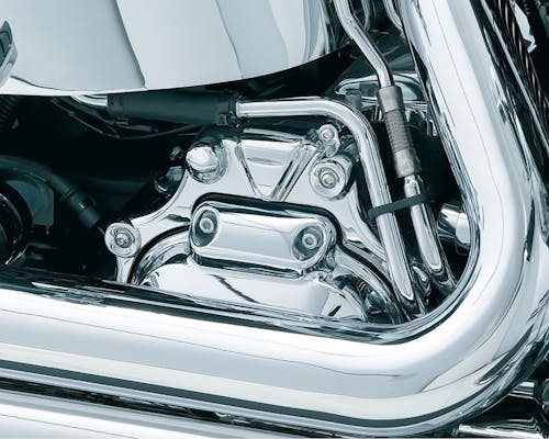 クリアキンといえばクロームパーツ! トランスミッション周りをクロームのカバーで覆う部品です。 他のクロームカバーと合わせて使用するとより輝きを増します。 |