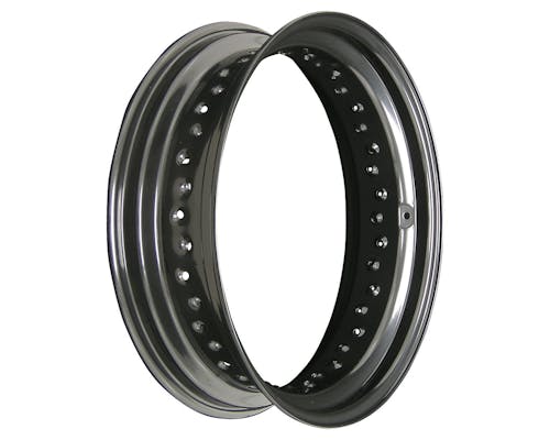 40穴スポークタイプのリムです。 迫力のある太いタイヤを履かせられます。 ホイールはバイクの顔とも言われますので、 錆びてしまっている場合や雰囲気の変更をお考えの際には、 足周りを引き締めるカスタムにご利用ください。 |