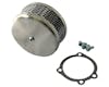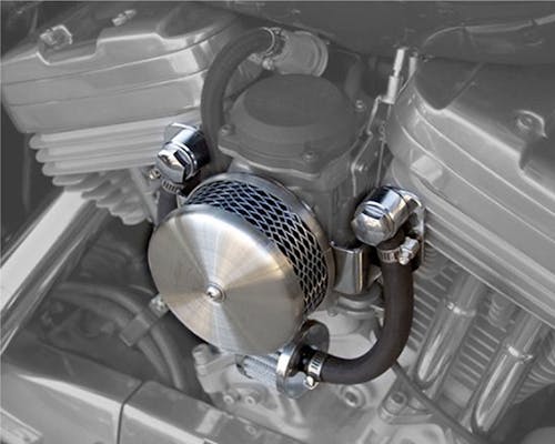オールドタイプの小振りなエアクリーナーです。 Vエンジンをより強調する事が出来ます。 モーターロックらしい質感の高い仕上げで、高級オーディオ のコントロールパネルの様なヘアライン仕上げは、存在感も際立てます。 |