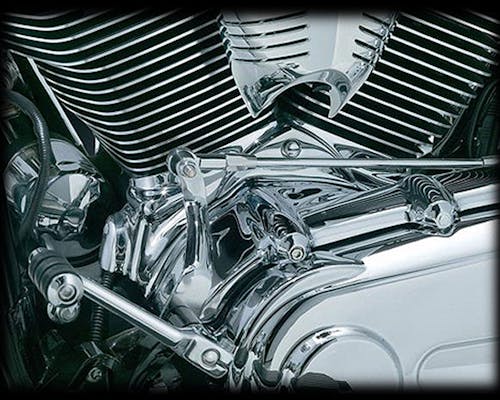 シリンダーベースを飾るクロームの装飾パーツです。 無骨なエンジンを煌びやかにし、よりメカニカルなイメージへ変貌させます。 |