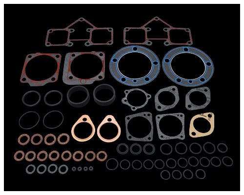 ショベルヘッドのシリンダーベースより上、 いわゆるトップエンド部分のガスケットセットです。 キットになっているので、細かく買い揃えなくてもOKですよ。 最も新しいショベルヘッドでも約30年前の車輌、トラブルも多く発生しますよね? こちらは一部のガスケットに、漏れ止を塗布したハイパフォーマンスタイプです。 エンジンをバラす際には是非1セットどうぞ。 |