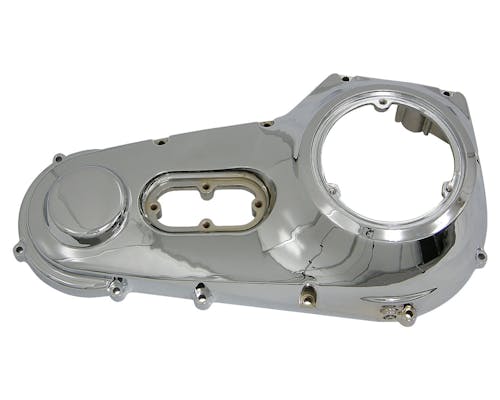 アウター(外側)のプライマリーカバーです。 フルメッキなので、見た目がとても綺麗です。 クロームカスタムに、リプレイス用にどうぞ。 |