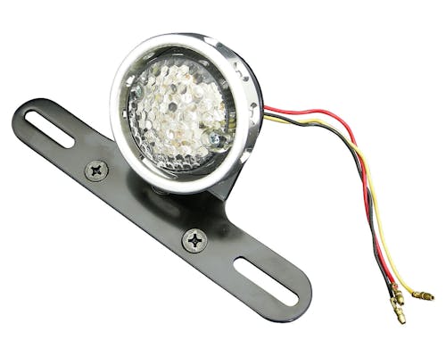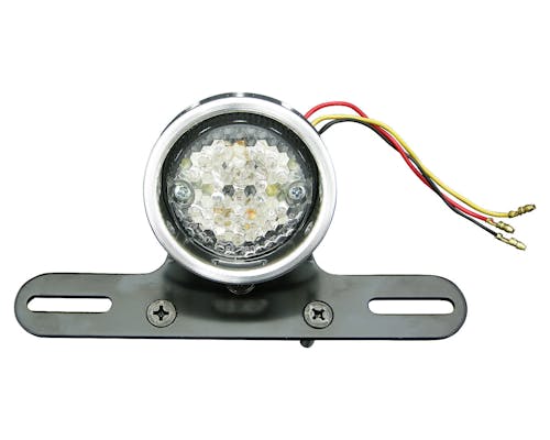 ボバースタイルに相性抜群のテールライトです。 中身のバルブはLEDですので視認性が向上しており、 小さいながらしっかりナンバー灯も付いてます。 サイドマウントやフェンダーに埋め込む等、 アイデア次第で様々なスタイルを楽しめます。 レッドレンズをご希望の場合には、 ラウンドテールライトを入れ替えてご利用ください。 配線色 テールライト:黄 ブレーキ:赤 アース(-):黒 |