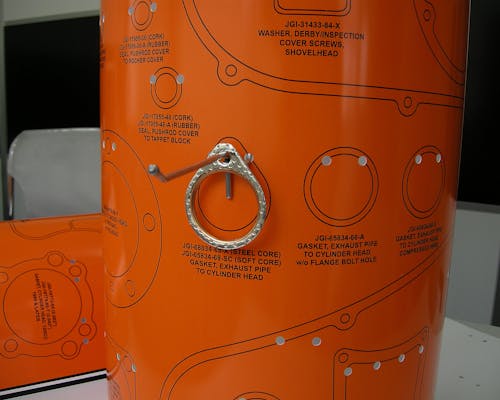 パン、ナックルヘッドに使用されているガスケットのディスプレイボードです。 永続的な利用を考慮し、素材は20milの薄さながら耐水、耐油ビニールを使用し、変色しません。 ガレージや店頭のディスプレイの他、お部屋のインテリアとしてもご利用ください。 |
