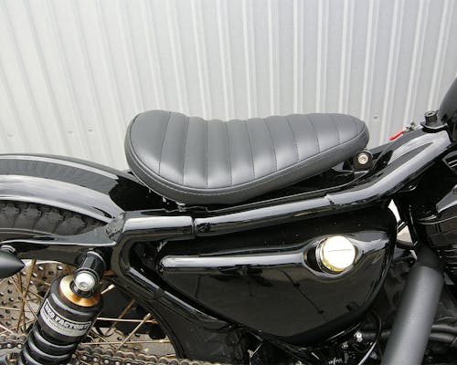 ソロシートです。シングルシート、サドルシートともいいますね。 オールドスクールの定番横のタックロール サイドウォール付きのしっかりしたタイプ アンダーには関連商品に記載のソロシート用アンダーブラケットを使ってください。 素材は合皮ですが、質感はかなり良いです。 |
