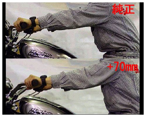 ※ハーレーダビッドソン純正ヒーテッドグリップ、キジマ製ヒートデーモンズ、 ハーレー専用タイプ(電子スロットル対応)に装着が可能です。 但しEFFEX HD BARはハンドル内径がやや小径であるため インナータイプのグリップヒーターの装着にはご注意下さい。 ※フルステア時タンクに干渉する為、付属のハンドルスペーサーを必ず使用して下さい。 【ケーブル類マッチング】 純正ブレーキホース適合:× 純正スロットルケーブル適合:○ 純正クラッチケーブル(ホース)適合:○ ※約70mm(3インチ)ロングのブレーキホースへの交換が必要です。 その他ハーネスの取り回し変更が必要です。 |