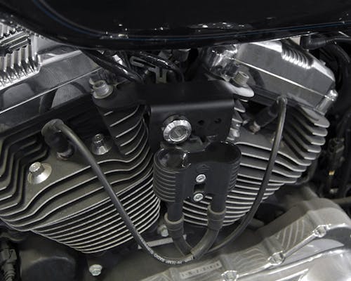 07年式降のスポーツスターに適合するIGコイル移設ステーです。 始めからそうだったかの様に、IGコイル及びメインキーを移設出来る設計となっています。 |