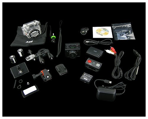 本体、TFTディスプレイスクリーン、リモコン、防水カメラケース 電池、外部リチウム電池、マウント用アダプター、携帯用ストラップ ACアダプター、AVケーブル、USBケーブル、携帯用ポーチ シガーソケットアダプター&USBケーブル、ハンドルマウント用ブラケット インストールCD、ユーザーマニュアル |
