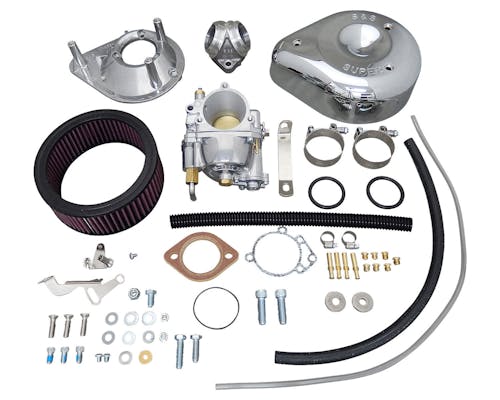 S&Sの代表作、言わずとも知れたスーパーEキャブ通称ショーティーです。 強烈で独特な加速感は病み付きになること間違いなし! キャブ仕様のハーレーオーナーなら1度は試していただきたい逸品です。 |