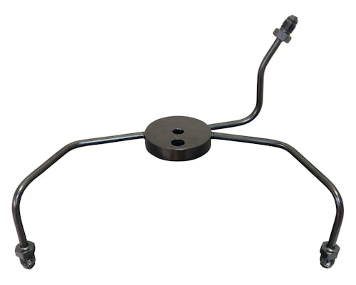 エルボー部分まで一体になった分岐用ブレーキティーです。 先端はAN-3規格になっており、フィッティングを必要とせず、 当店のブレーキラインが接続出来ますので、 ダブルキャリパーのブレーキライン交換では重宝します。 |
