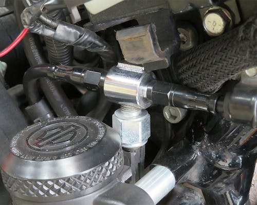 リアブレーキのラインに咬ませ、ブレーキスイッチをつける為のブレーキティーです。 先端はAN-3の構造となっているので、そのままGTSブレーキラインが取り付け出来ます。 |