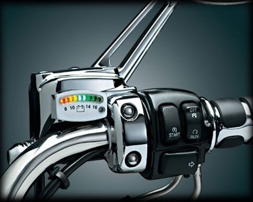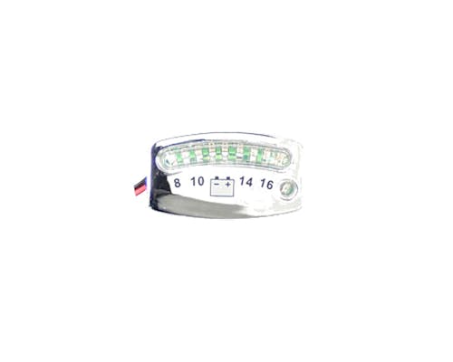 LEDを使用したバッテリーゲージです。 配線はバッテリーに接続するだけの簡単設計です。 バッテリー残量の状況や、過充電などの異常が一目で確認可能です。 お好みの位置にお取付け下さい。 |