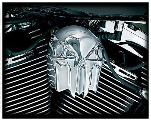 クリアキンの御家芸、ブラッククロームのカバーです。 複雑な造形ながら仕上がりのクオリティは『流石』の一言。 こちらは両面テープで固定する為、簡単に取り付けが出来ます。 他のスカルデザインのパーツと合わせて、車輌をコーディネートしてください。 |