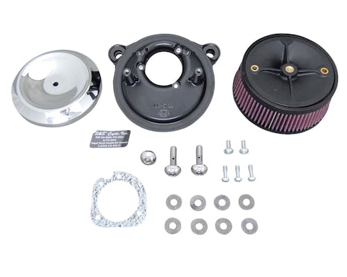 高性能吸気システムを搭載した、S&SのNEWラインナップ、 ステルスエアークリーナーキットです。 ドレスアップもさることながら、吸気効率の向上によりパワーアップも見込めます! |