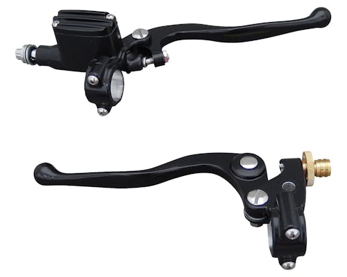 レバーの絶妙な曲線やマスターカバーのリブド加工、 一部にブラス部品を取り入れるなど、徹底してデザインに拘ったハンドコントロールです。 4速のクラッチケーブルに対応するピボットピン付属。 ハイテックカスタムだけでなく、オールドスクールとの相性も抜群。 シックなブラックフィニッシュで、個性的なハンドル周りを演出します。 ブレーキ側にはシンプルなスロットルハウジングを合わせるとGoodです。 シングルディスク車向けのマスターボアとなっております。 |