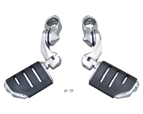 エンジンガードに装着するタイプのハイウェイペグです。 アームの角度を変えることにより、高さの調性が可能。 足を投げ出しハイウェイを駆け抜ける様はハーレーの醍醐味ですね。 オス型であればペグをお好みのタイプに変更できます。 |