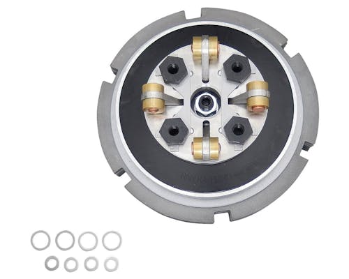 プリモの最高傑作、プロクラッチにクラッチアシストシステム・TPPを搭載したクラッチキットです。 ジャダーや引きずりなど、クラッチ周りのトラブルの改善に加え、 高回転時、ウェイトの遠心力効果が加わり、 プレッシャーをより高めるパフォーマンスパーツです。 大排気量やチューンドエンジンにトルクアシスト致します。 |