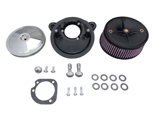 高性能吸気システムを搭載した、S&SのNEWラインナップ、 ステルスエアークリーナーキットです。 ドレスアップもさることながら、吸気効率の向上によりパワーアップも見込めます! |