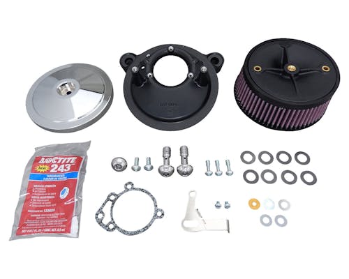 高性能吸気システムを搭載した、S&SのNEWラインナップ、 ステルスエアークリーナーキットです。 ドレスアップもさることながら、吸気効率の向上によりパワーアップも見込めます! |