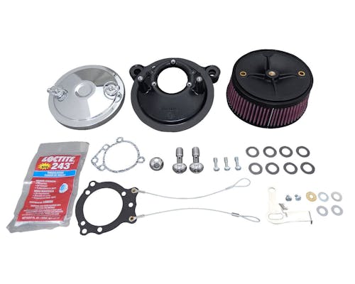 高性能吸気システムを搭載した、S&SのNEWラインナップ、 ステルスエアークリーナーキットです。 ドレスアップもさることながら、吸気効率の向上によりパワーアップも見込めます! |