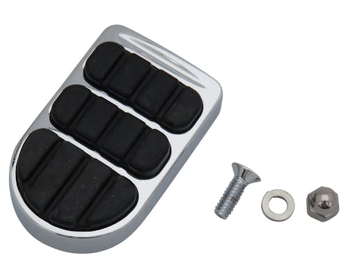 クロームとラバーのコンストラストが鮮やかなブレーキパッドです。 純正のブレーキペダルパッドと交換する事で操作性が向上します。 |