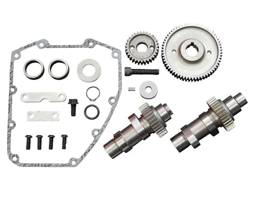 S&S社製のギアドライブカムシャフトキットです。 ギアドライブはチェーンドライブに比べて、 大幅にフリクションロスが軽減し、レスポンスが向上します。 カム形状はS&Sの「557シリーズ」で、 ツーリング・トライグライドなど重量級の車両向けに、 低回転~大きな効力を発揮するカム特徴となっております。 |
