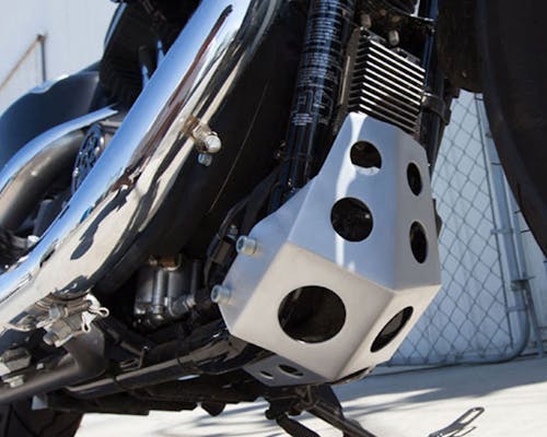 SPEED MERCHANT製のスキッドプレートです。 叩き出しで仕上げられたアルミプレートで、 ストリートレーサーやエクストリームの雰囲気がアップします。 これを装着してウイリー走行するSPEED MERCHANTらしい作品です。 Made in California,U.S.A. |