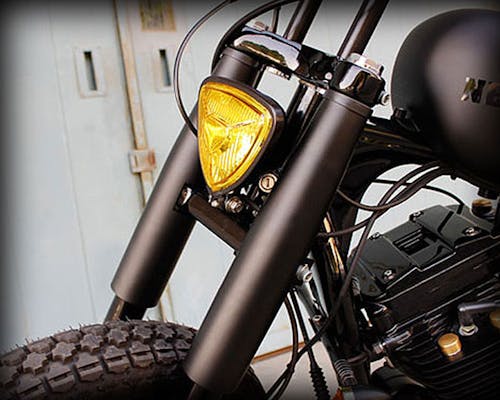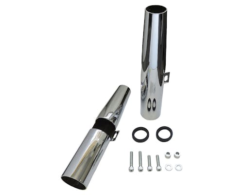 オールドスクールルックに最適なフォークシュラウドです。 取り付けるだけで雰囲気抜群! ボバースタイルやカフェスタイルオーナーが好んで装着するフォークシュラウドですが 視覚的効果ばかりではなく、 細かな砂やゴミからインナーチューブを守るという 機能的効果も期待できます。 フォークチューブを一度抜き取る必要がありますので、 取り付けはバイクショップに依頼しましょう。 |