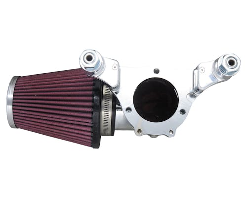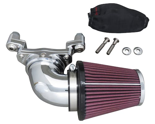 リベラプリモがリリースするインテークシステム、 フォワードスウェプトエアフィルターキットです。 前方に大きくせり出したむき出しの大迫力フィルターは 見た目もさることながら吸気効率も大幅にUPさせます。 S&SのE&Gキャブと合わせてドラッグレーサーなどのハイパワー仕様に! 専用カバーが付属していますので、多少の雨でも安心です。 |