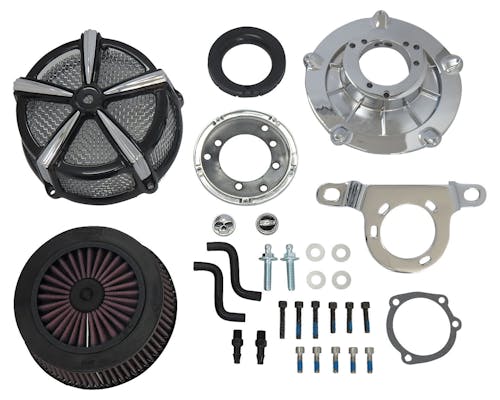 ハイフロータイプのK&N製のフィルターが標準装備された 最高のパフォーマンスを求めたクリアキン製のカスタムエアークリーナーです。 ブラケット、ブリーザーキット等が含まれたコンプリートキットとなっております。 別売りのメダリオンを装着する事によりカスタムバリエーションがアップします。 |