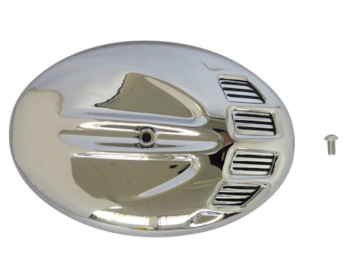 ツインカムモデルの標準装備のエアクリーナー専用カバーです。 独創的とインパクトのあるデザインはさすがクリアキンですね。 エンジン周りをゴージャスに演出します。 |