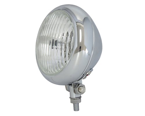 ヴィンテージの雰囲気が漂うクラシックヘッドライトです。 バックに向かう美しい曲線美は、現行の量産型には成し得ないデザイン性でしょう。 オリジナル品には無かったマウントブラケットを設定。 車体への取付が容易です。 H4ハロゲンバルブ採用で、明るく、HI/LOWの切り替えも可能です。 |