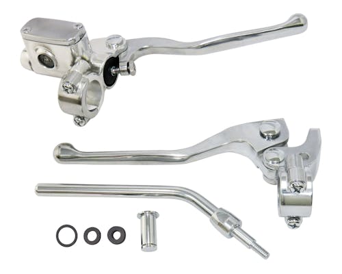 ハンドルまわりをすっきりとさせるカスタムに最適な、 シンプルなデザインを追及したハンドコントロールキットです。 オールドスクールチョッパーとの相性も抜群! 美しいポリッシュ仕様で、カスタムをさらに演出します。 ピボットと入れ替えてお使い頂ける専用のミラーステムと、 4速&5速以降のクラッチケーブルに対応するピボットピン付属! シングルディスク車向けのマスターボアとなっております。 |