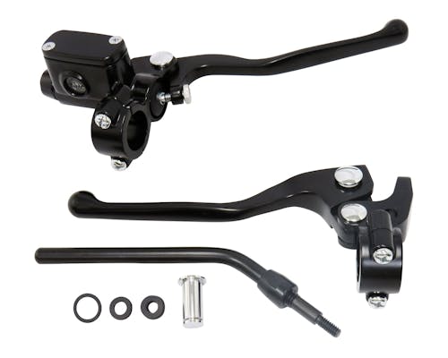 ハンドルまわりをすっきりとさせるカスタムに最適な、 シンプルなデザインを追及したハンドコントロールキットです。 オールドスクールチョッパーとの相性も抜群! シックなブラックフィニッシュで、カスタムをさらに演出します。 ピボットと入れ替えてお使い頂ける専用のミラーステムと、 4速&5速以降のクラッチケーブルに対応するピボットピン付属! シングルディスク車向けのマスターボアとなっております。 |