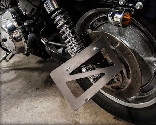 縦置きのナンバープレートを横置きに変更する 道路運送車両法施行規則に合わせたブラケットです。 69テールやルーカステールステーがボルトオンでマウントできます。 サイドマウントにする事でリア周りがスッキリしますね。 |