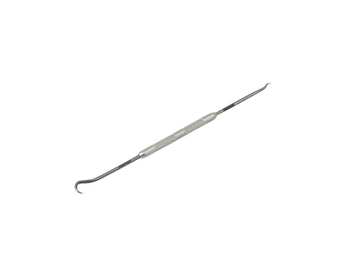 両側ぞれぞれに違った角度を持たせることでより使いやすくなったピックツールです。 先端に特殊加工を施すことで、曲がりや潰れに強くなりました。 もち手には滑り止めのローレット入りです。 |